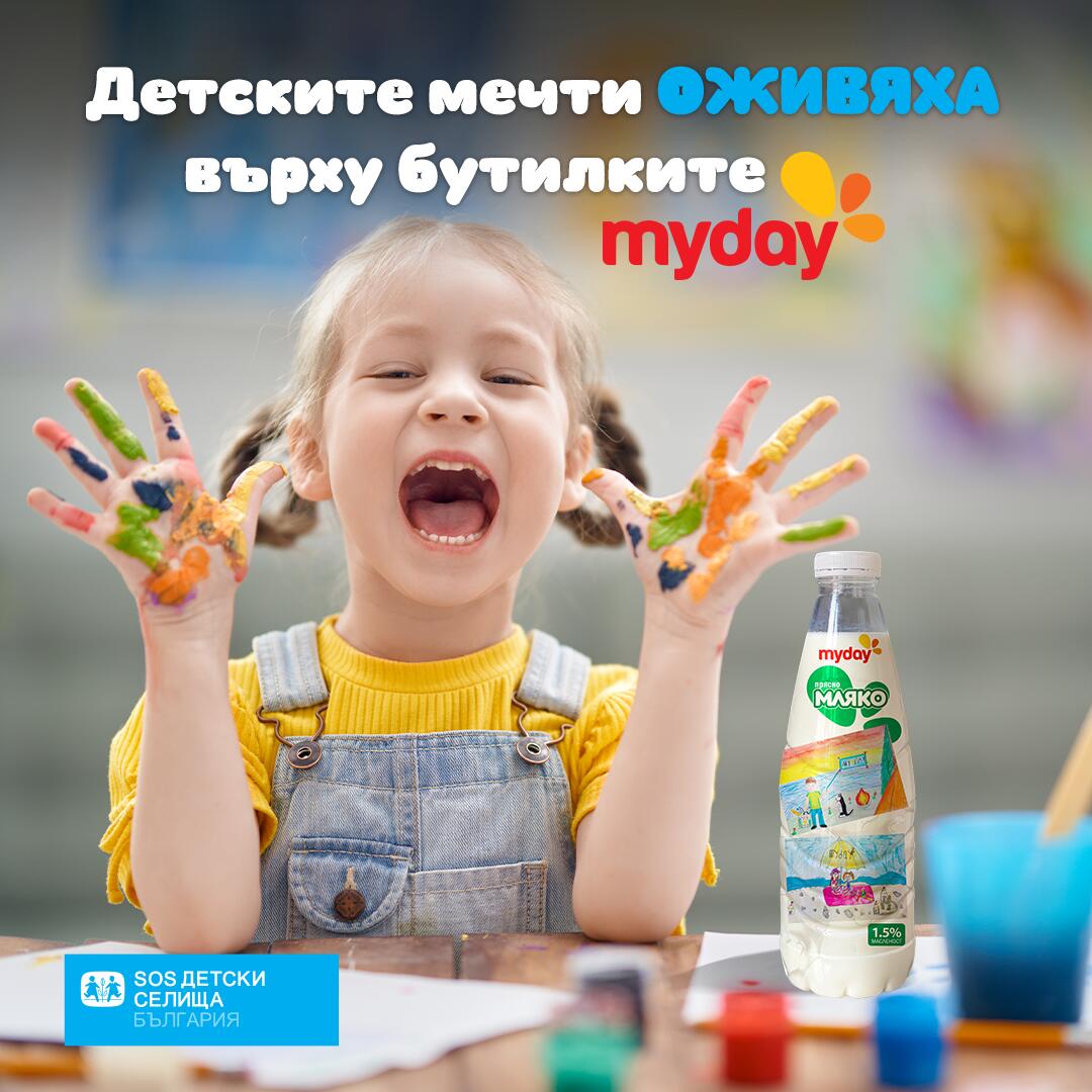 Компанията дарява част от приходите от продажби на прясно мляко в полза на SOS Детски селища България. Потърсете и Вие бутилките с детски рисунки.