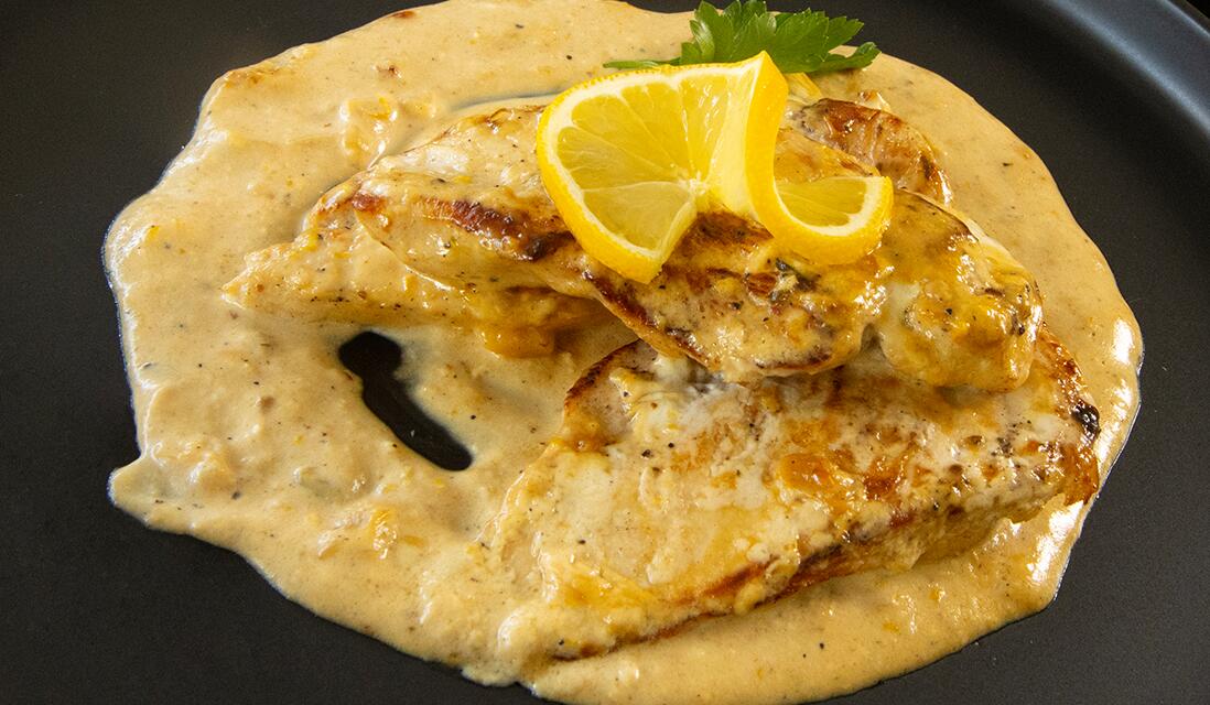 800 г пилешко филе 1 глава чесън 1 бр. голям лимон 500 мл млечна сметана за готвене CREMIO 30 мл олио