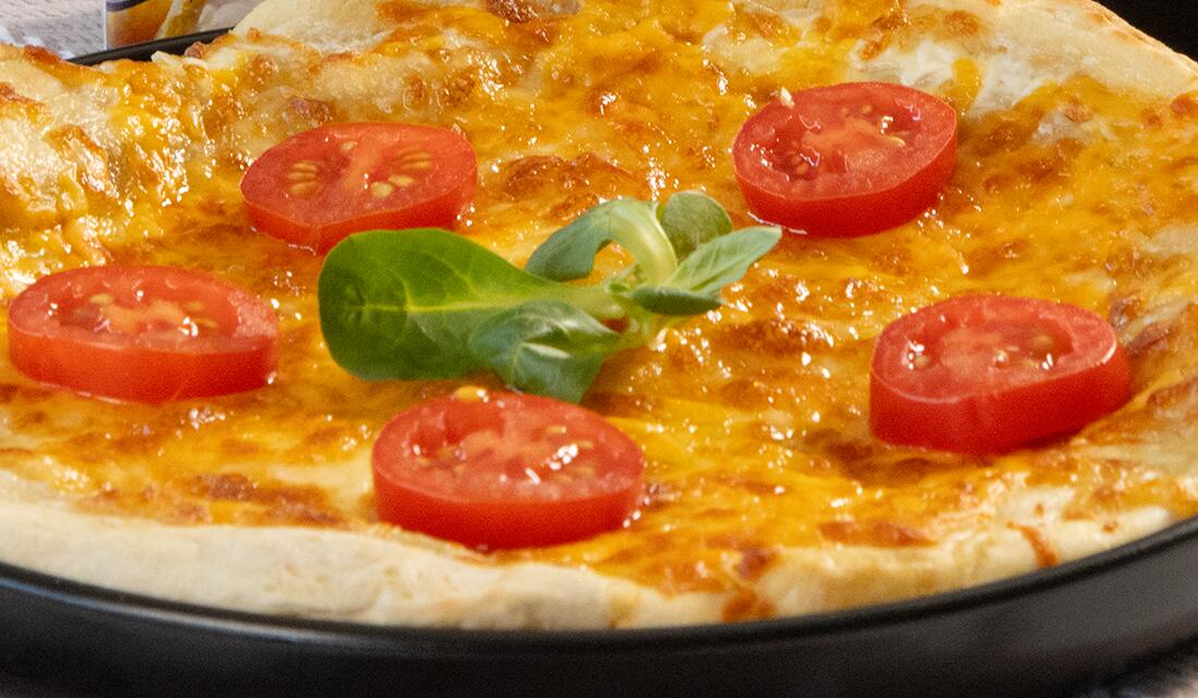 Разточва се тесто с дебелина 3 мм и в размер, подходящ за кошницата на Вашия еър фрайър. Оформената пица се надупчва с вилица, за да се изпече равномерно. Пече се 4 мин. на 210°C. Изважда се намазва с 10 мл готварски крем CREMIO, поръсва се с чедъра и моцарелата / кашкавала. Връща се еър фрайъра и се пече още 5 мин на 210°C. Готовата пица се аранжира с нарязани кръгчета чери домати и босилек.