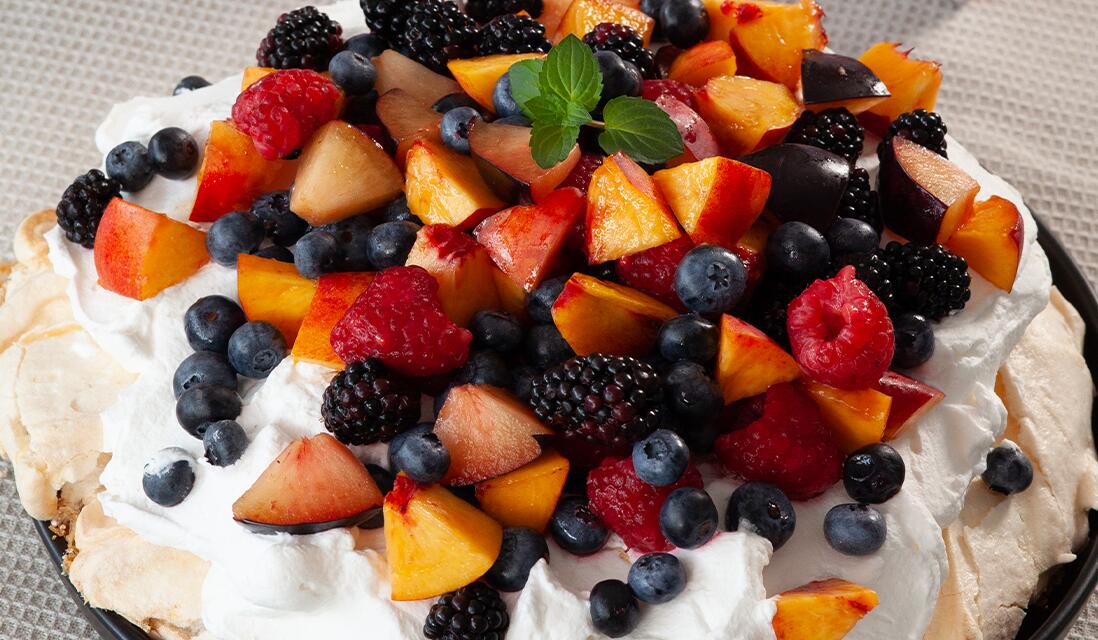 Отделят се белтъците и се разбиват в дълбок съд, като към тях се добавя част от захарта на 2-3 пъти, за да се даде възможност на белтъците да бухнат още повече. Добавя се нишестето, сокът от 1 лимон и се разбърква за 30 сек. Получената смес се изсипва в кръг върху хартия за печене, оформя се като гнездо и се пече в предварително загрята фурна на 120°С за 90 мин. Оставя се да се охлади. Разбива се сладкарският крем CREMIO и се напълва охладеното целуфчено гнездо, така че да излезе обилно крем около и върху самото гнездо. Най-отгоре се добавят плодове по желание (малини, къпини, боровинки, ситно нарязани парченца праскови, сливи, др.). Украсява се с листенца от мента.
